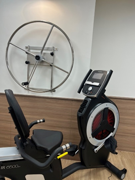 ●徒手治療/運動區 包含:肩輪、腳踏車、筋膜槍、指梯、滾筒、彈力帶及啞鈴。