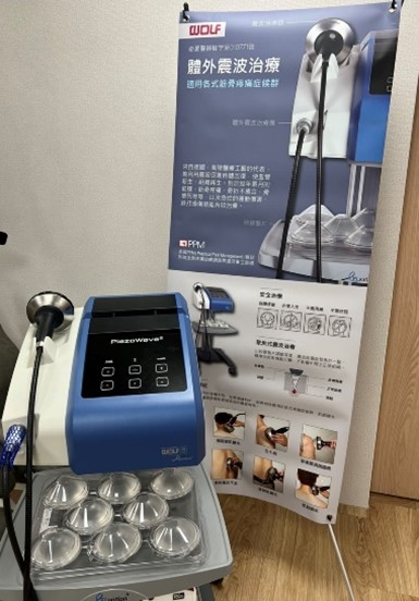 本診所引進『德國 Wolf 最高階的 ESWT 體外震波儀』,能針對慢性疼痛部位給予高能量震波,藉由重複震盪方式,增進軟組織細胞代謝循環,軟化僵硬組織,使組織恢復血液供給,促進鈣化組織的再吸收、促進循環修復及組織再生。