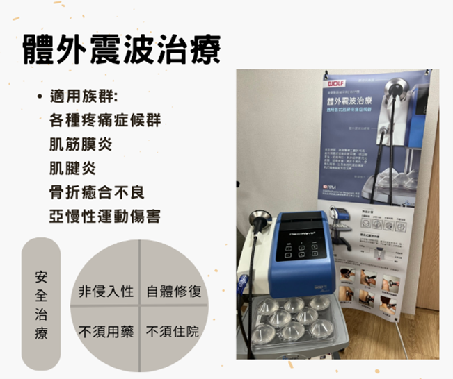 ●儀器治療除了健保儀器外,本院還設有最先進的骨骼體外震波及高能量雷射